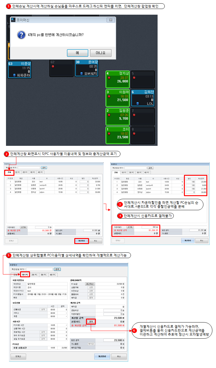 카운터PC에서 단체손님PC 요금 계산하는 방법
